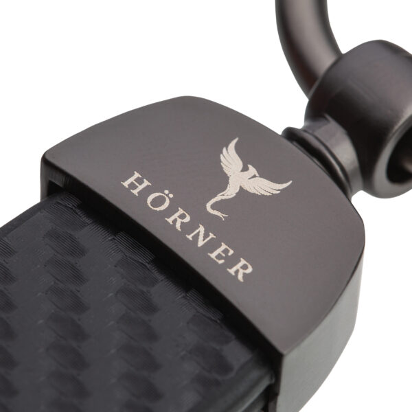Der Orion Schlüsselanhänger von Hörner kombiniert sportliche Eleganz mit kompromissloser Robustheit. Gefertigt aus einer widerstandsfähigen Zinklegierung und einer Oberfläche in edler Carbonoptik, ist er nicht nur ein praktisches Accessoire, sondern auch ein modernes Statement.