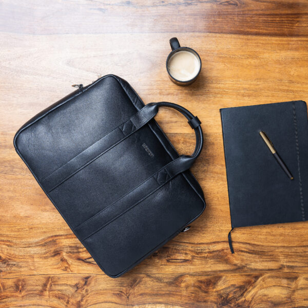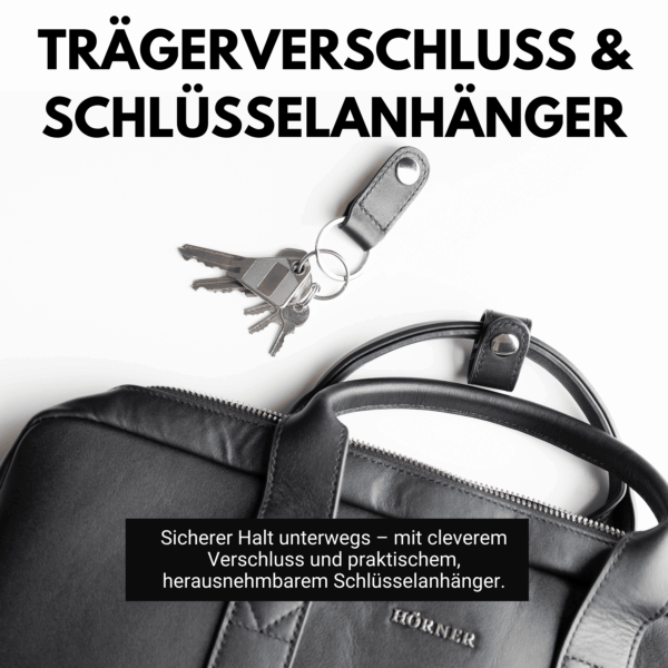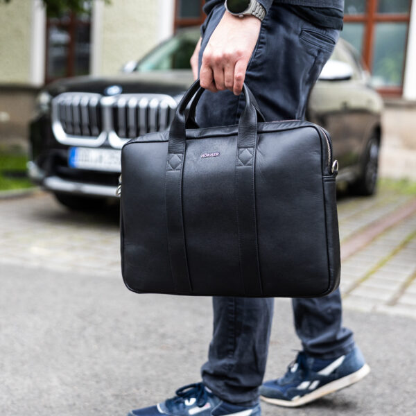 The Hörner Mainz business bag combines minimalist design with maximum functionality – perfect for sophisticated business moments. Made from the finest black premium nappa leather, it stands for style, quality and durability. The elegant surface gives every appearance a confident presence – whether in the meeting room or when traveling.