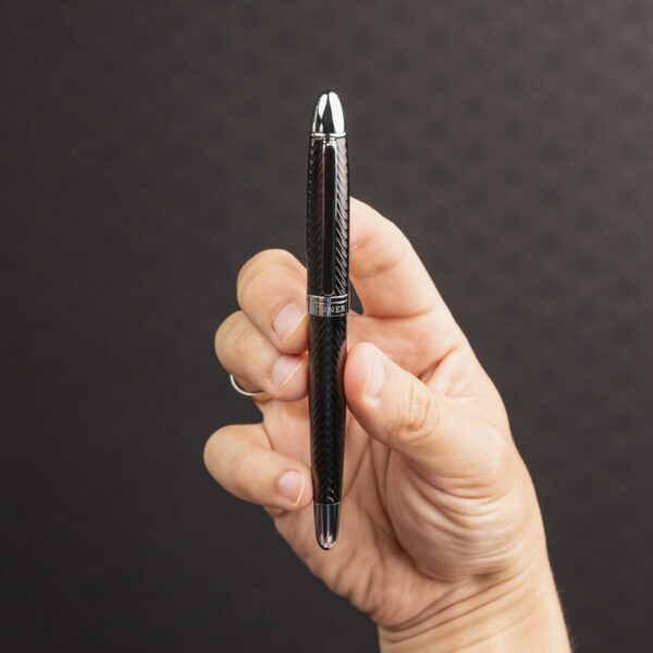La precisión se une a la presencia: el roller Hörner Solaris convence por su diseño llamativo y su impresionante tacto. Con un peso de 38 g, un diámetro de 1,8 cm y una longitud de 14,5 cm, es más que un simple instrumento de escritura: es toda una declaración de intenciones. El cuerpo, con un aspecto elegante y sofisticado, armoniza con los detalles cromados pulidos a alto brillo y confiere al roller un aspecto moderno y potente. La precisa mina del roller garantiza una escritura fluida, ideal para hombres que buscan estilo y calidad.