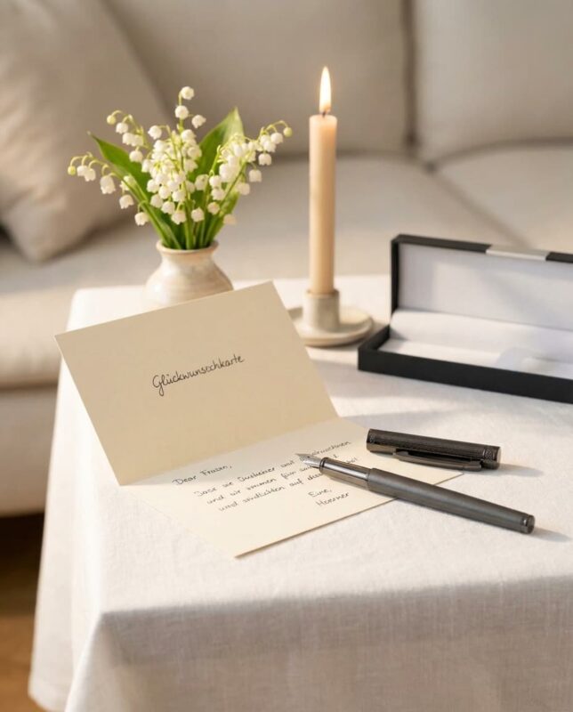 Deshalb unser praktischer Rat: Denken Sie Geschenk und Übergabe immer zusammen. Ein sorgfältig gewähltes Papier, eine ruhige Handschrift, vielleicht ein Band in der Lieblingsfarbe — das kostet wenig und verändert die Wirkung komplett.