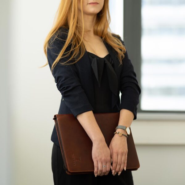 - Schutz vor Wasser und Flecken: Obwohl Echtleder mit der Zeit widerstandsfähiger wird, sollten Sie Ihr Produkt vor übermäßiger Feuchtigkeit und direktem Kontakt mit Wasser schützen. Flecken sollten sofort mit einem weichen, trockenen Tuch entfernt werden.