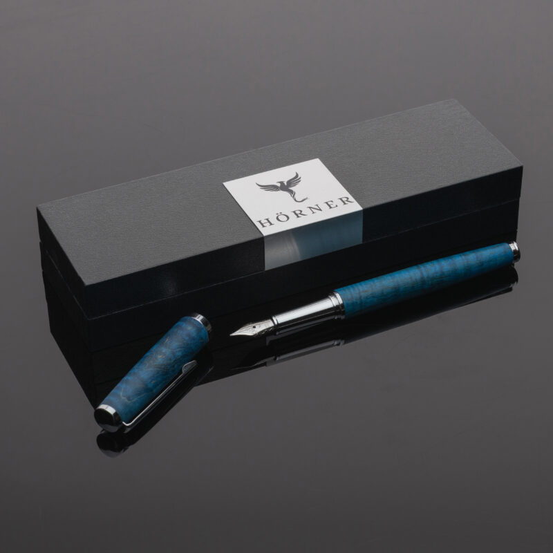 Der Primus Oceanus Füllfederhalter steht für klassische Schreibkultur mit modernem Charakter. Die kräftige, blaue Holzmaserung bringt Individualität und Ausdruck auf jedes Papier. Mit 28 Gramm Gewicht, einem Durchmesser von 1,6 cm, einer Länge von 13,7 cm und ergonomischer Form eignet sich der Füller perfekt für feine Handschrift, Unterschriften und den Alltag. Die hochwertige Größe 5 Feder sorgt für ein ruhiges, gleichmäßiges Schriftbild. Verpackt in einer eleganten Hörner-Geschenkbox.