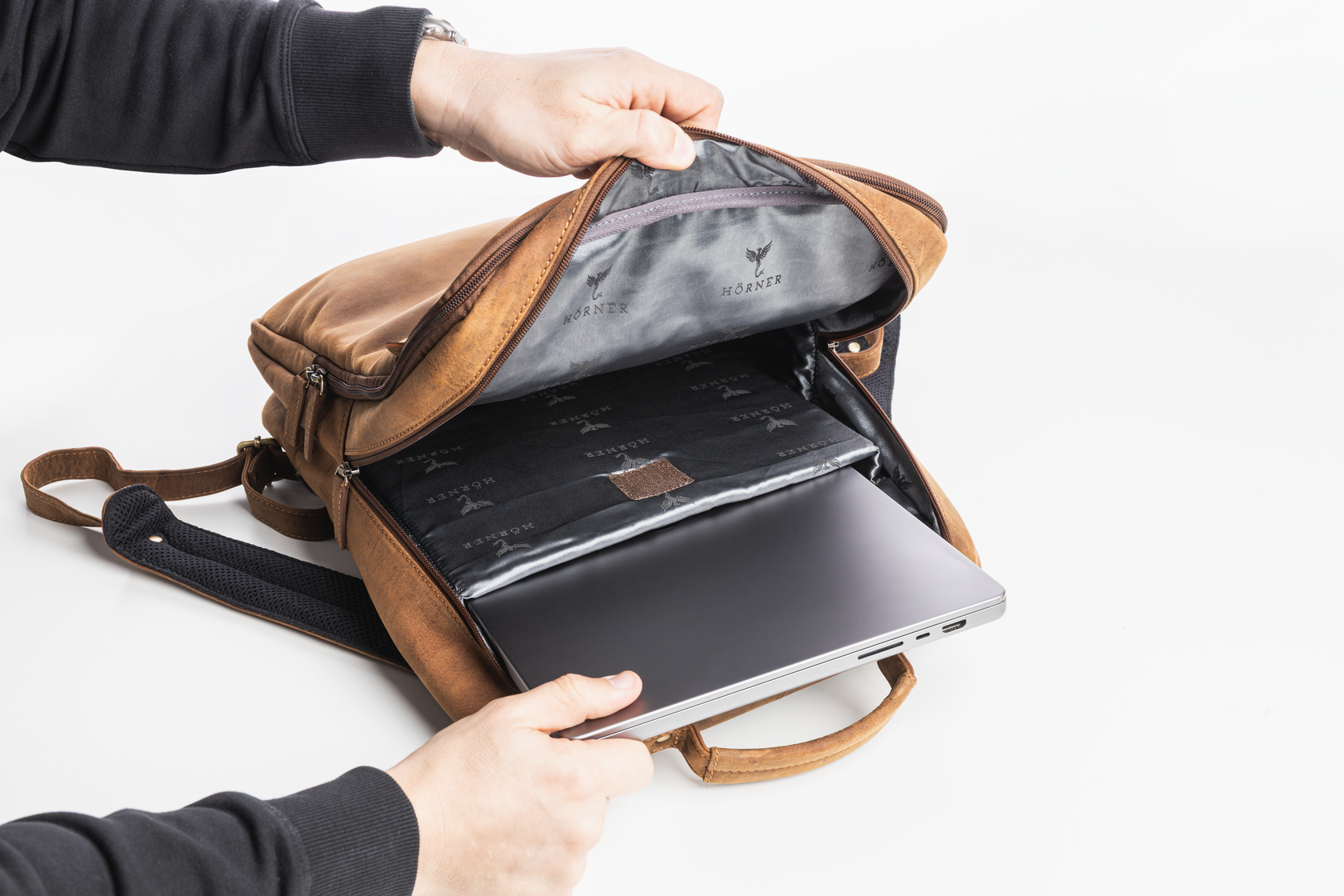 Im Inneren überzeugt der Saxum durch ein großzügiges Hauptfach. Das integrierte Laptopfach für Geräte bis 16 Zoll schützt empfindliche Technik zuverlässig und schafft klare Ordnung. Die durchgehend hochwertige Innenausstattung betont den Premiumcharakter und macht den Rucksack zum verlässlichen Begleiter für Reisen, Arbeitstage oder Wochenendausflüge.