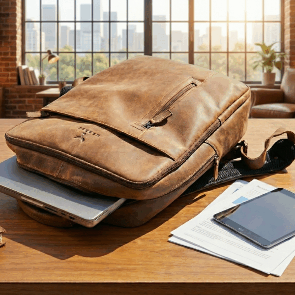 Der Saxum Vintage Reiserucksack verbindet charaktervolles Design mit robuster Alltagstauglichkeit. Gefertigt aus echtem cognacfarbenem Leder und auf der Vorderseite mit dem eingeprägten Hörner Logo versehen, entsteht ein Rucksack, der durch seine warme Farbgebung und die natürliche Struktur des Leders sofort Aufmerksamkeit erzeugt. Der Name Saxum steht für Beständigkeit und Zuverlässigkeit – Eigenschaften, die dieser Rucksack in jeder Situation verkörpert.