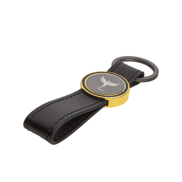 Der Vega Schlüsselanhänger von Hörner vereint elegantes Design mit langlebiger Verarbeitung. Gefertigt aus Echtleder aus Schweinefell und massiver Zinklegierung, überzeugt er durch hohe Robustheit und eine edle Haptik. Die Kombination aus schwarzem Leder und goldfarbenem Metallrahmen macht ihn zu einem markanten Accessoire für den täglichen Gebrauch.