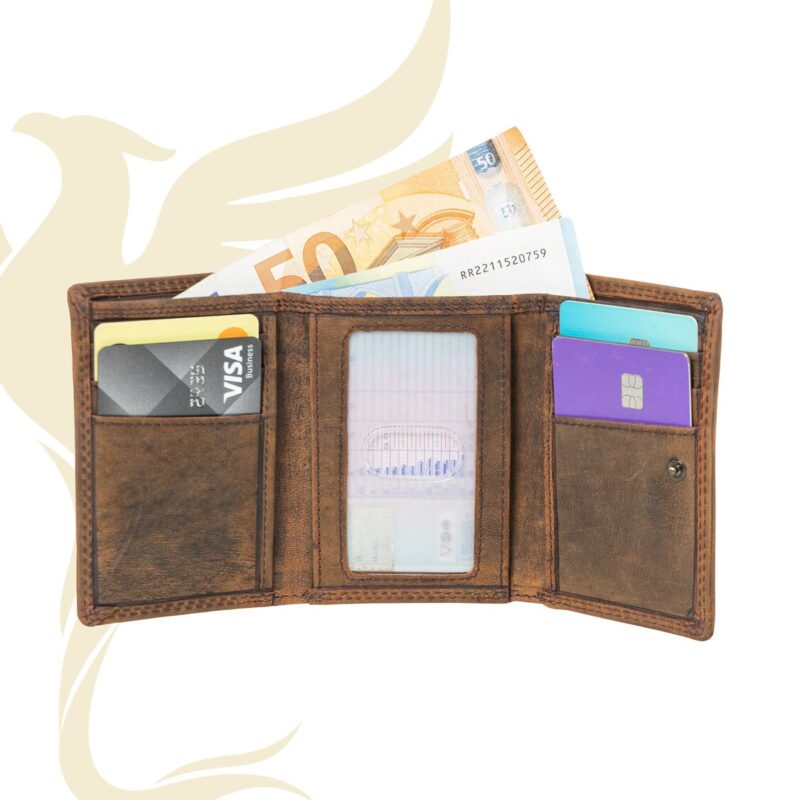 Die Ventus bietet 7 separate Kartenfächer für Ihre wichtigsten Karten. Dazu 2 Scheinfächer und 2 Innenfächer für Belege oder andere Dokumente. Die kompakte Form passt bequem in jede Hosentasche.