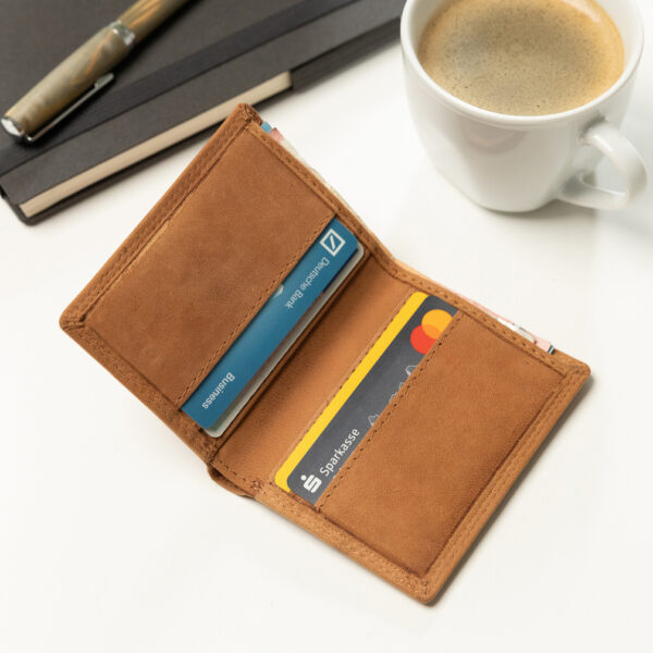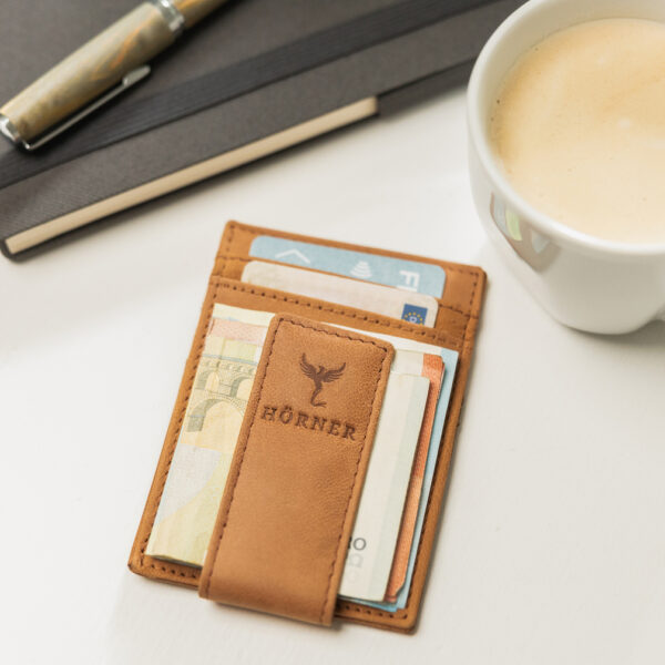 Das Hörner Vivida Kartenetui in Braun vereint markantes Design mit funktionaler Alltagstauglichkeit. Gefertigt aus hochwertigem Wildleder, überzeugt es durch seine weiche, matte Oberfläche und eine griffige Haptik. Mit seinen kompakten Maßen von 10,3 cm Länge, 7,5 cm Breite und 2 cm Dicke sowie einem Gewicht von nur 32 Gramm liegt es leicht in der Hand und passt mühelos in jede Jacken- oder Hosentasche. Trotz des schlanken Formats bietet das Etui Platz für sechs Karten und verfügt zusätzlich über ein praktisches Innenfach für Geldscheine oder Notizen. Die klare Linienführung, das dezente Logo auf der Vorderseite und die durchdachte Aufteilung machen das Vivida Kartenetui zu einem idealen Begleiter für alle, die schlichte Eleganz mit praktischer Funktion verbinden möchten.